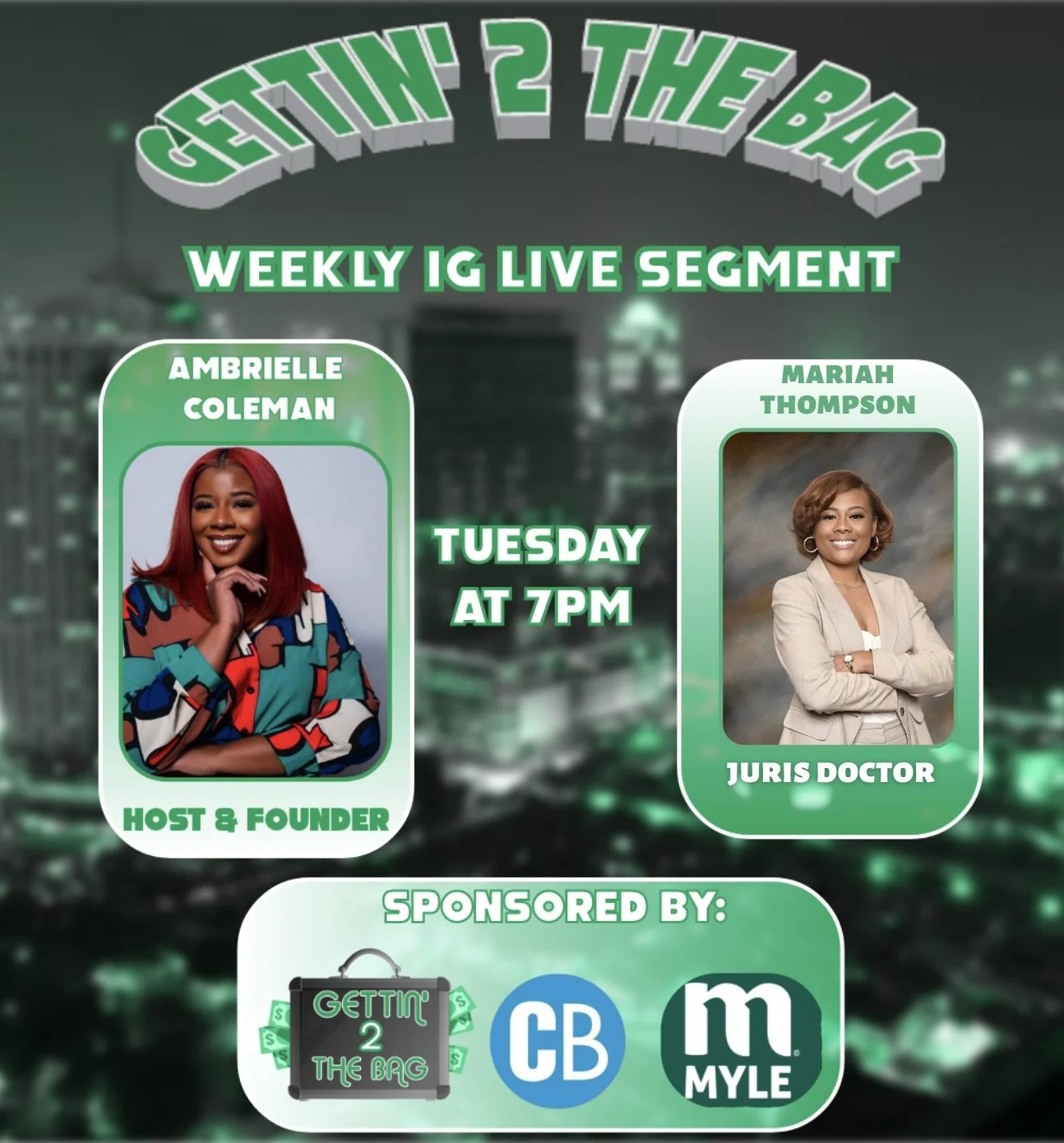 Driven by my desire to uplift others, I founded and host Gettin’ 2 the Bag Podcast, a professional development and lifestyle podcast highlighting the journeys of young Black entrepreneurs and creatives. My platform aims to empower my listeners to reach their fullest potential. Watch Gettin’ 2 The Bag LIVE from Instagram on Tuesdays at 7:00PM ET!